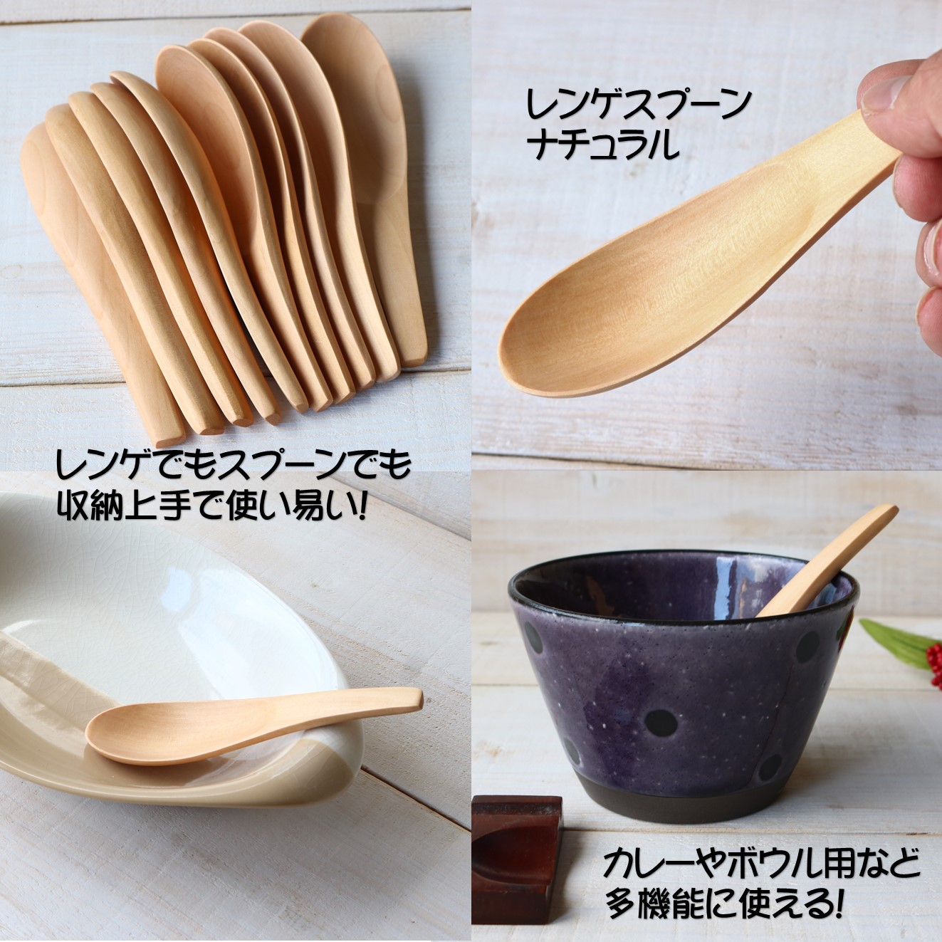 ☆レンゲでもスプーンでも収納上手・使い易い!【収納上手・特別価格・多機能】レンゲスプーン ナチュラル|木の器・弁当箱のことなら、わかちょう本舗へ
